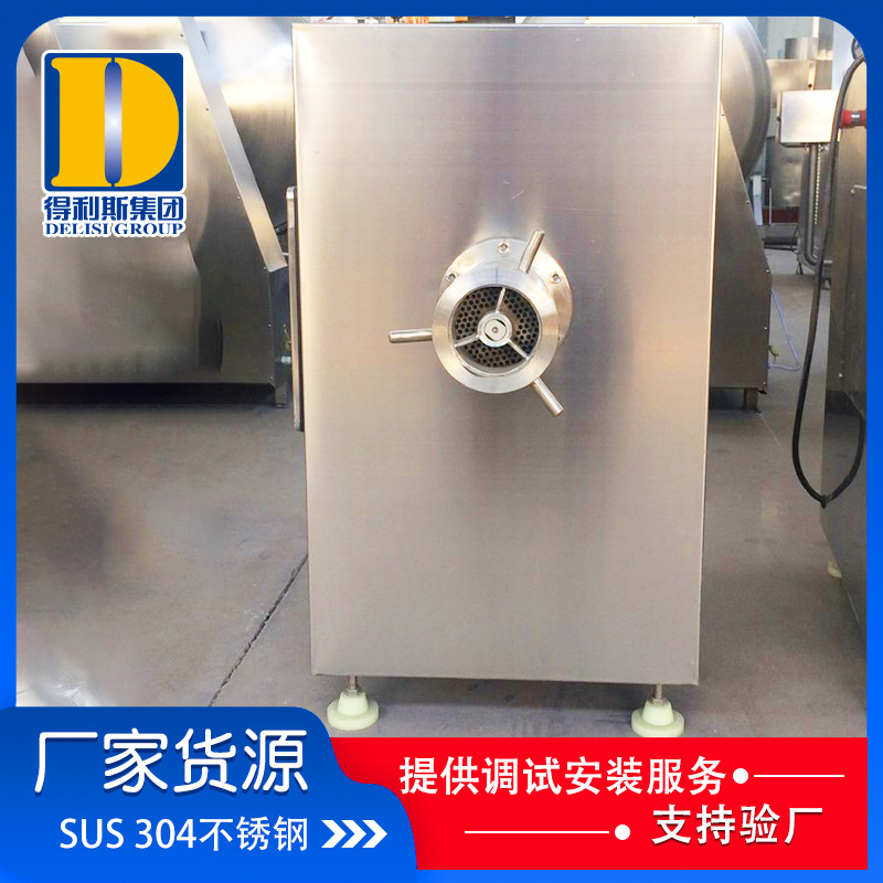 3、凍肉絞肉機(jī)是肉制品生產(chǎn)行業(yè)中通用性高使用范圍廣的種肉食加工設(shè)備。它是依靠螺旋桿將料斗箱中的原料肉推到預(yù)切板處,通過螺桿的旋轉(zhuǎn)擠壓使用孔板與鉸刀產(chǎn)生相對(duì)運(yùn)轉(zhuǎn),從而將原料肉切成顆粒塊狀,確保了肉餡的均勻性。